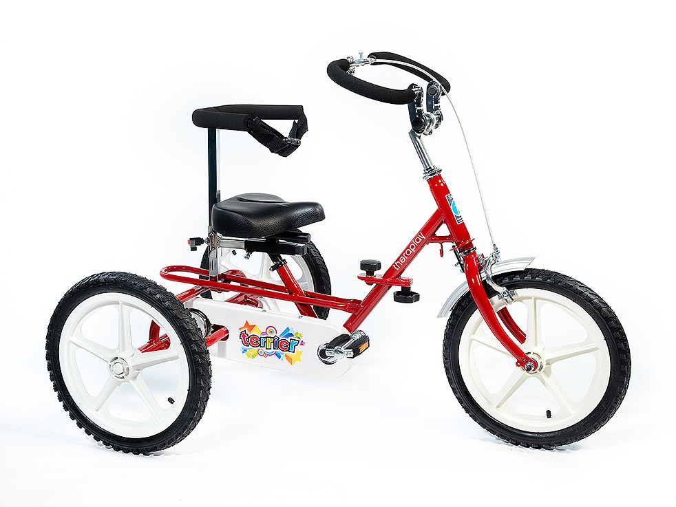 The Terrier Tricycle is an easy to pedal cycle designed for younger riders. It is constructed from a strong yet lightweight frame and is fitted with an easy to pedal fixed gear. It can be adjusted to accommodate growth with a seat that adjusts forwards and backwards as well as vertically, the handlebars can also be adjusted in height and angle to ensure the rider is in the optimum position for pedalling.